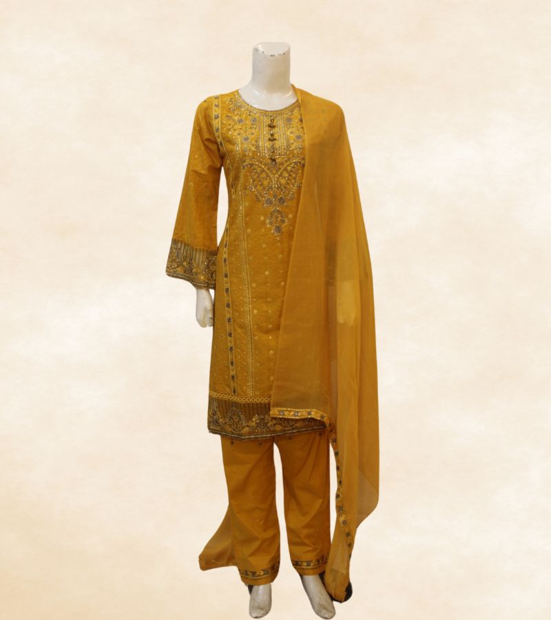 - Printed lawn sleeves with heavy embroidered spangle work sleeves border